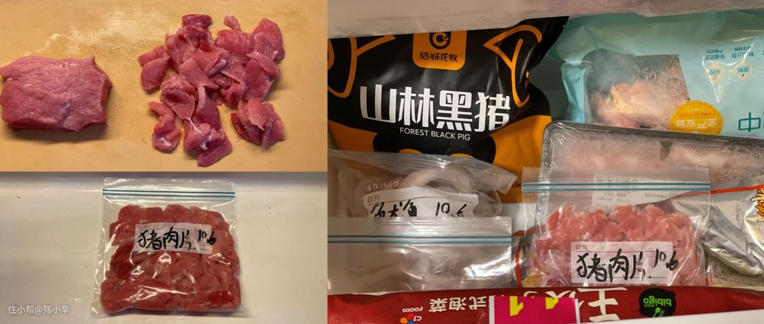 关于肉的预处理就是打包成每次需要用的小分量,放入冷冻室
