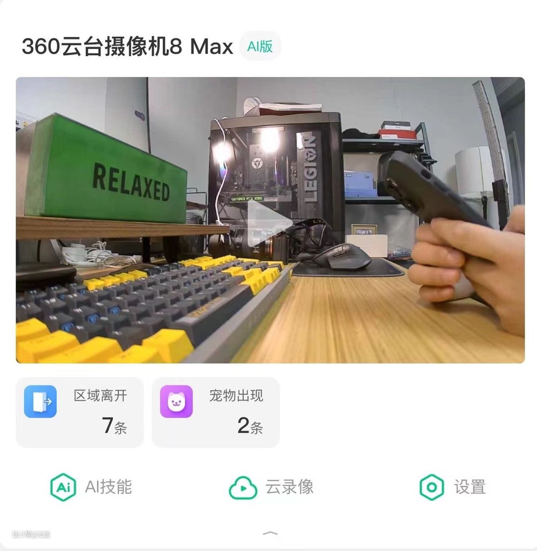 - AI 宠物侦测,一键查找萌宠视频。这款摄像头做到了全景视角,犄角旮旯都不放过,在外也能实时查看宠物的情况。
