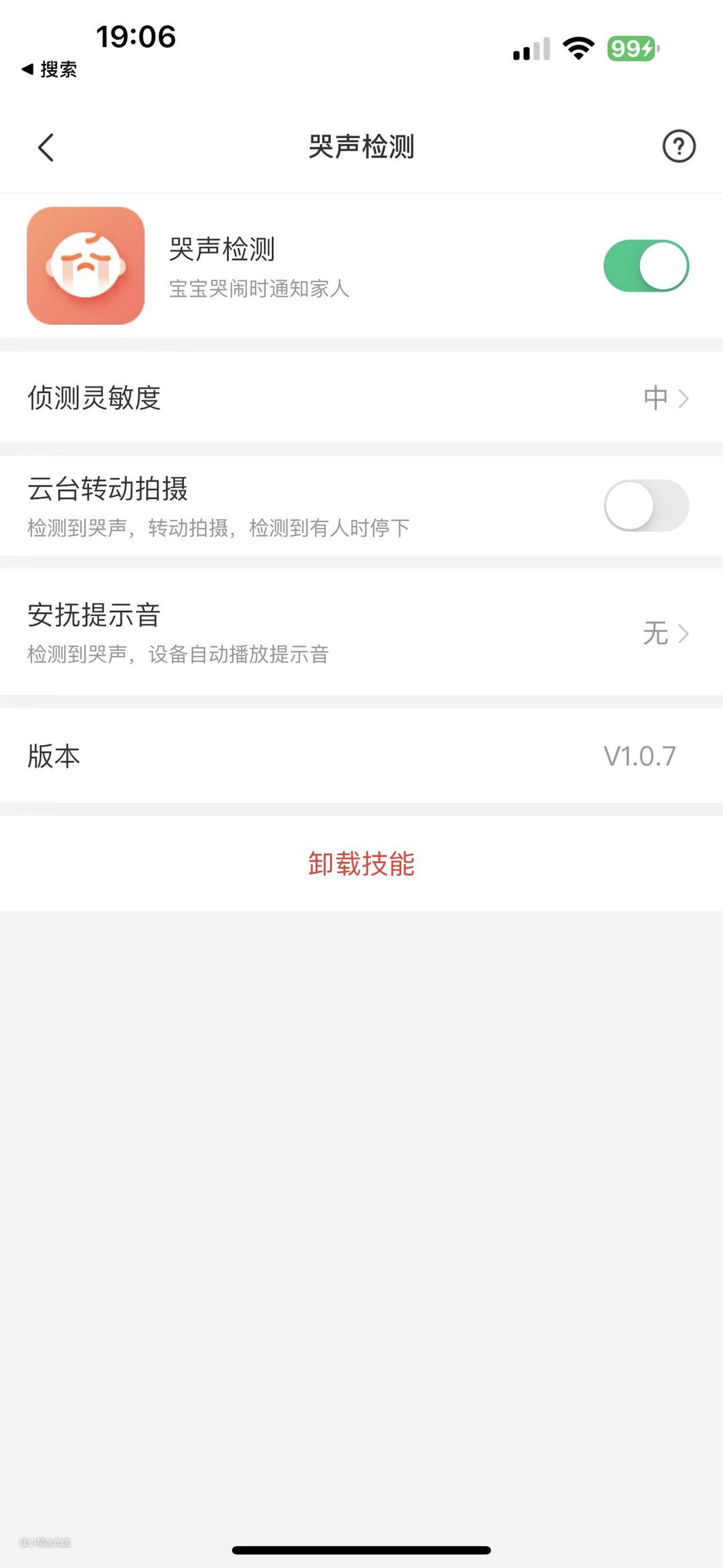 - AI 哭声侦测:大人不在身边(去快递/买菜等短暂离开的时候)它可以精准识别宝宝的哭声并及时安抚宝宝。