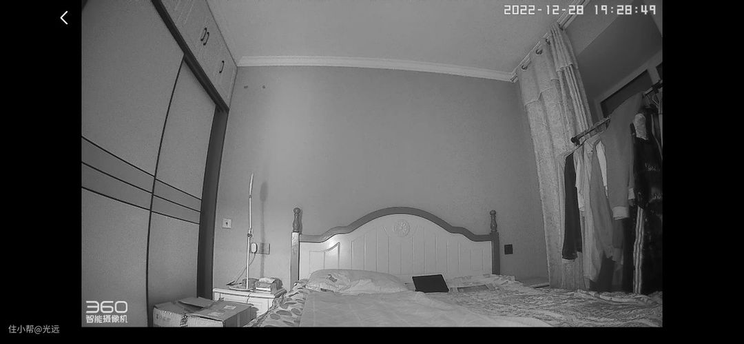 晚上无光环境自动进入超清红外夜视,即使放在床头,也不会影响家人休息。