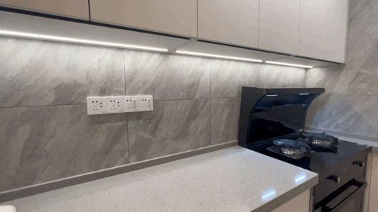 在吊柜底部增加灯带,彻底杜绝照明死角;