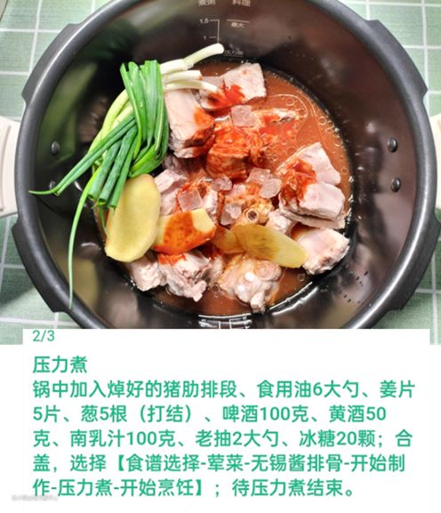 600克排骨会提示70KPA的压力下10分钟;500克鸡肉会建议50KPA的压力下10分钟。