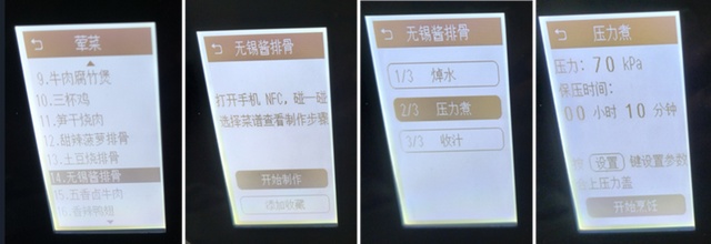 老老实实跟着引导菜单走,选择“压力煮”,猪肉只需要70KPA即可。