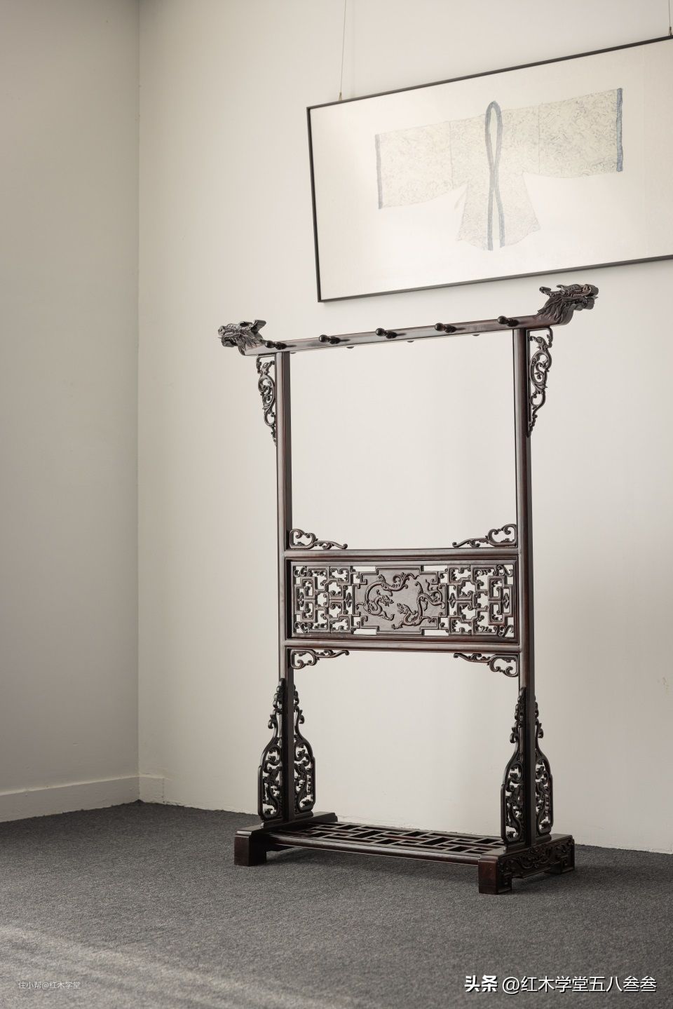 古代的衣架没挂钩是怎么用的?来看看这样雕刻繁华的古典红木衣架