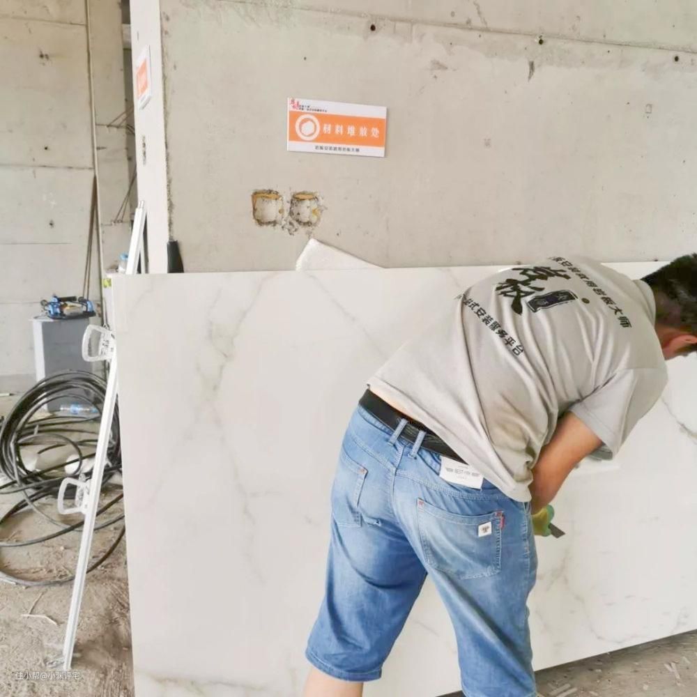 其次是铺贴费用高,前面也说了,因为岩板的吸水率比较低,所以铺贴时必须配合瓷砖胶或者瓷砖背胶使用。这些胶水,都是需要钱的。而且胶水用量大,带来的环境污染就严重了。买好胶水,又会进一步增加施工成本。