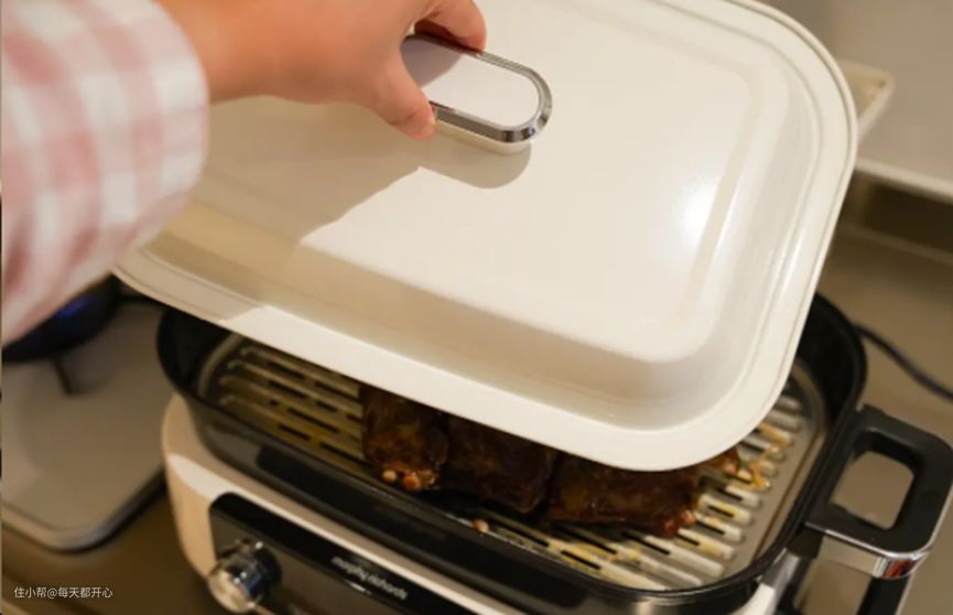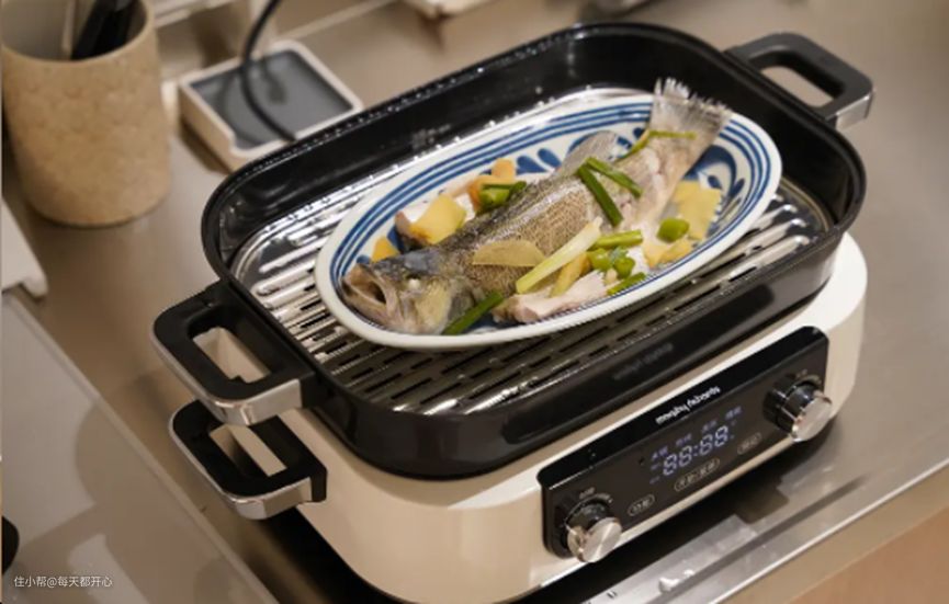 蒸格:可以弥补家里没有大型蒸锅的短板,摩飞长方形的设计,让它能轻松放入一整条鱼或者一堆海鲜,而不必在家准备巨大的蒸锅或者嵌入式蒸箱,相当于有了第三个灶,蒸好还能直接端上桌,方便。