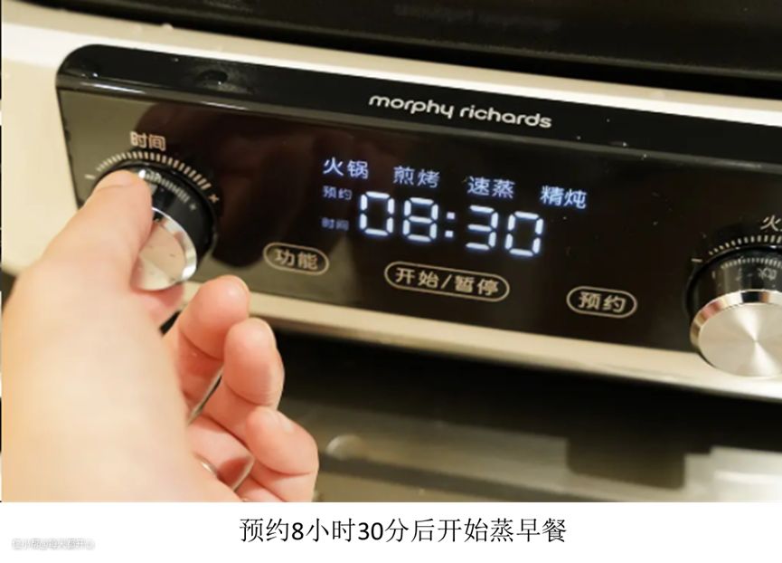 最最重要的是,摩飞二代料理锅增加了喜闻乐见的定时和预约功能,可定时1-3小时(3小时只针对精炖功能),预约最长可以到12小时后(预约只针对速蒸和精炖模式)。