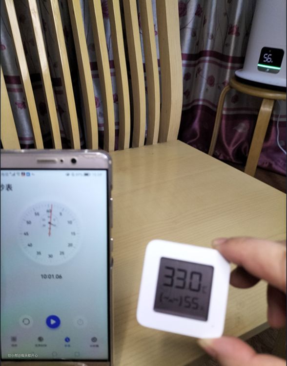 测试了一下打开加湿器前后的对比,器材有限,用的以前小米空调配送的的温湿计,肯定测量不了太准确,但差不多可以看一下。