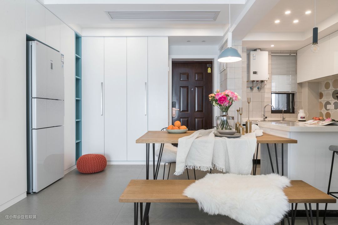 今天小编给大家分享83m²小户型简约北欧风装修案列,也能将装修出大户型宽敞的效果,把玄关、餐厅、厨房都在入户门做开放式设计,看该如何设计的吧!
