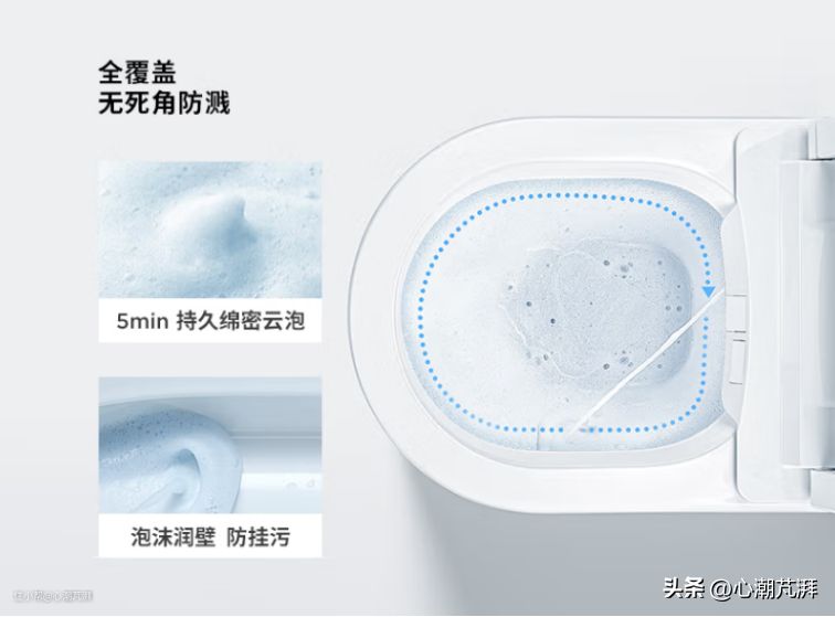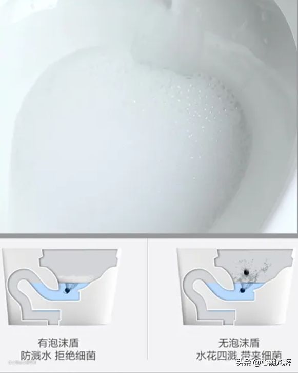 ▲不同厂家的对自家泡沫层都有不同的名称。常见称呼有泡沫净、泡沫墙、泡泡盾、魔力泡、魔术泡等。最早由松下智能马桶CH2261WSC搭载的功能,其360°漩转喷洒的泡沫盾,绵密的泡沫层使得初期智能马桶用户感受到前所未有的黑科技。其主要功能是四个,防溅,防粘,抑菌除菌,防臭。个人觉得心理作用大于实际作用,因为现在符合国标的马桶本身防溅也会达标的。。。属于附加技能点,不是标配,一般都有这个功能的都会贵一点,而且很多国产泡沫盾都是外挂的,既难看又没有太大实际作用,按个人需求考虑吧。
