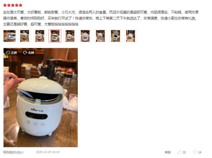 小巧可爱,颜值高,内胆是不粘锅的,非常厚实,还适合家有小宝宝的家庭煮饭的功能也是有分2种,他能煮宝宝的软米饭,也能煮大人正常吃的米饭;