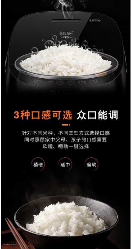 推荐理由:IH加热,大火包锅,米粒360度翻滚,加热均匀不夹生,颗粒分明口感好。
