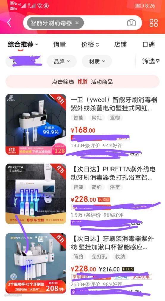 大家看以下价格对比截图就能发现天猫精灵智能牙刷消毒器的性价比非常高。