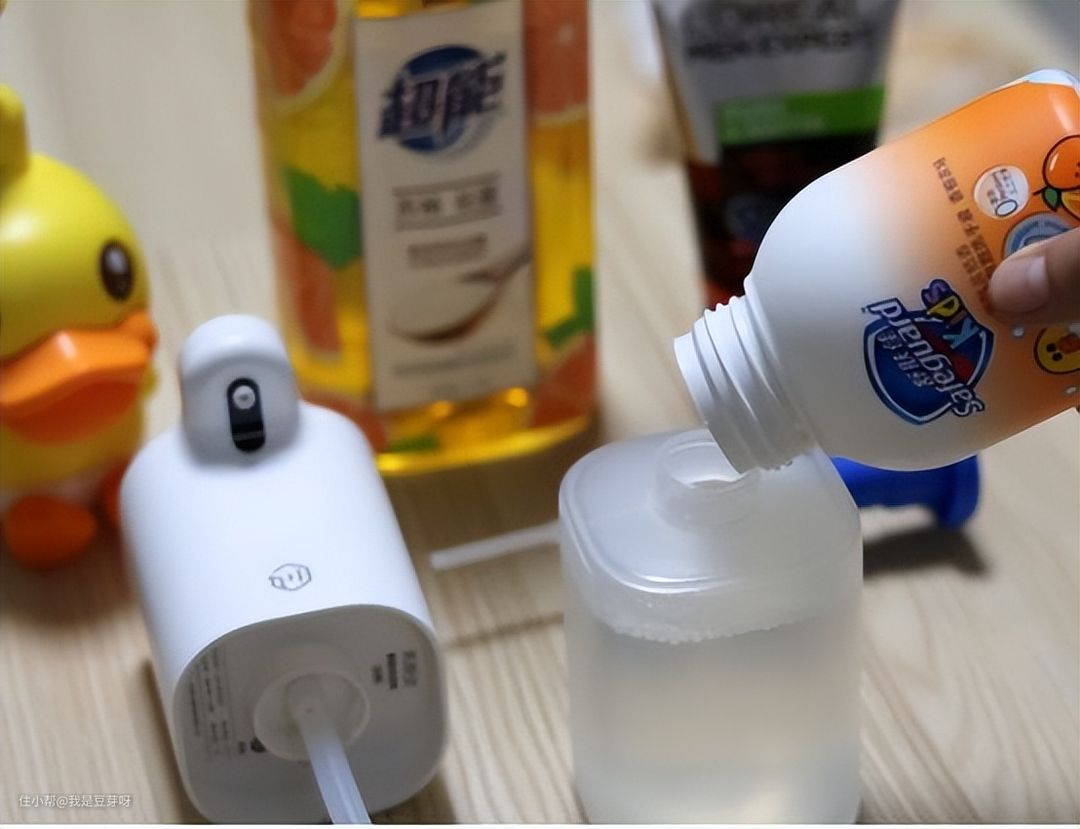 主机(上半部分)和集液盒(下半部分)轻轻一拧就能分离,分离后可以往盒子里添加多种液体,盒子容量320ml,可以添加洗手液、洗发水、沐浴露、洗面奶、洗洁精等。广泛的应用在居家生活的各种场景,比以前用手去按压的体验好太多了。