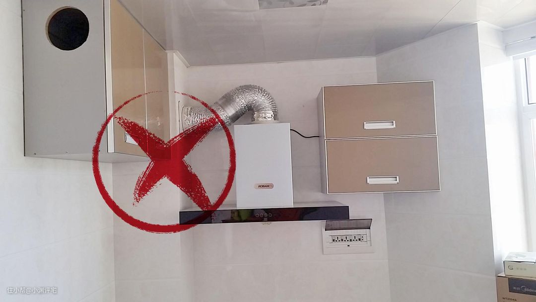 ②水平位置不合理,油烟机的长、宽都要比燃气灶大才行。而且安装的时候,油烟机的中线要和燃气灶的中线对齐。如果装偏了,就免不了会漏烟。