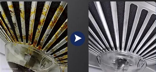 此外,底部双臂喷淋+顶部双旋飞轮+多头静淋,实现360度高温高压喷淋洗涤。