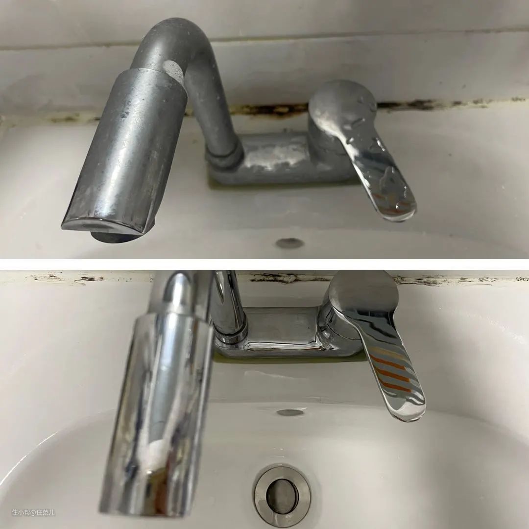 ▼水龙头后面的黑色霉斑 也用它刷掉了些