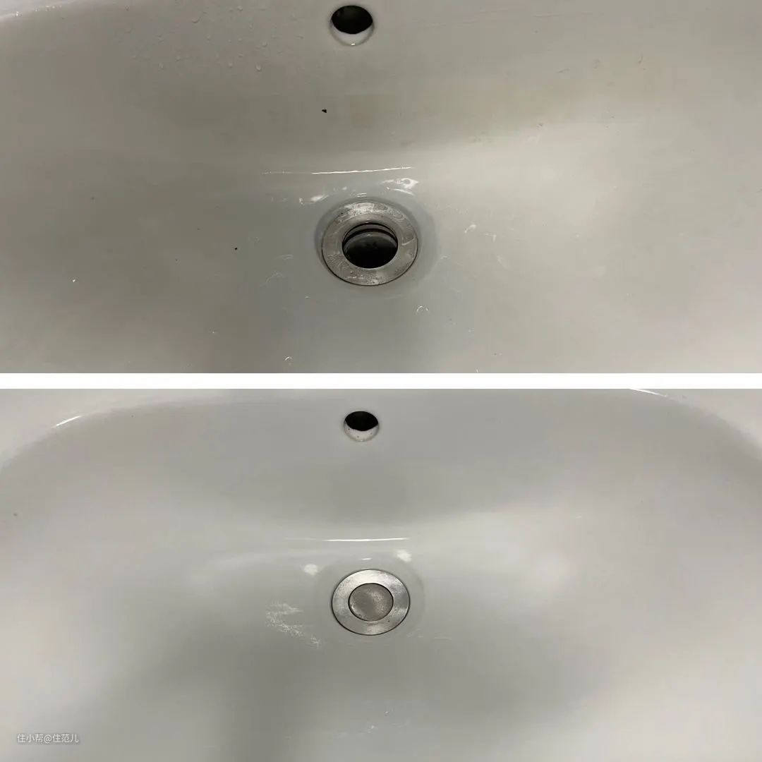 除了地板、瓷砖缝隙,纳米海绵可以把洗手池内壁污垢擦掉,且不用放任何清洁剂;