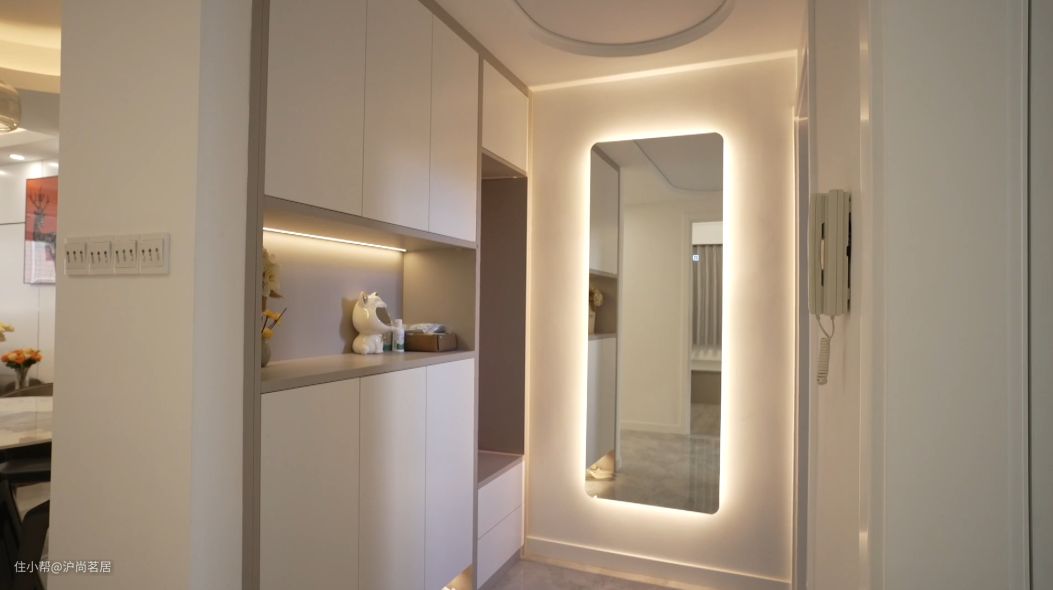 玄关是这次装修时,设计师重新改建出来的,以前的房型没有玄关,一打开门就是客厅;现在在门厅处增设了玄关柜和穿衣镜,不仅入户的仪式感增加了,家里还多了一个储物空间;