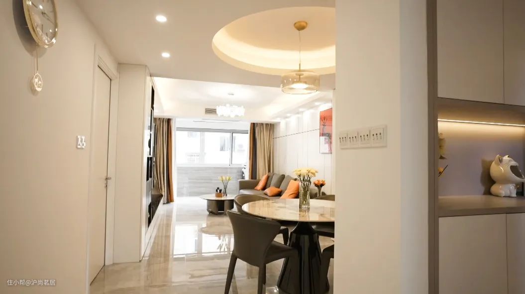 本期为大家介绍的是虹口一套108平的老房改造案例~应屋主的装修需求,设计师对屋内结构进行了合理的调整,比如将其中一间朝南卧室改为客厅,令整个空间更加通透、明亮,同时充分利用有限的空间,增强房子的储物功能,让整个房子干净整洁、井井有条!