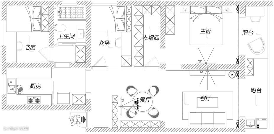 3、将原本的部分客厅空间改造为主卧衣帽间+小次卧,充分利用每一寸空间,让整个空间规划更合理!