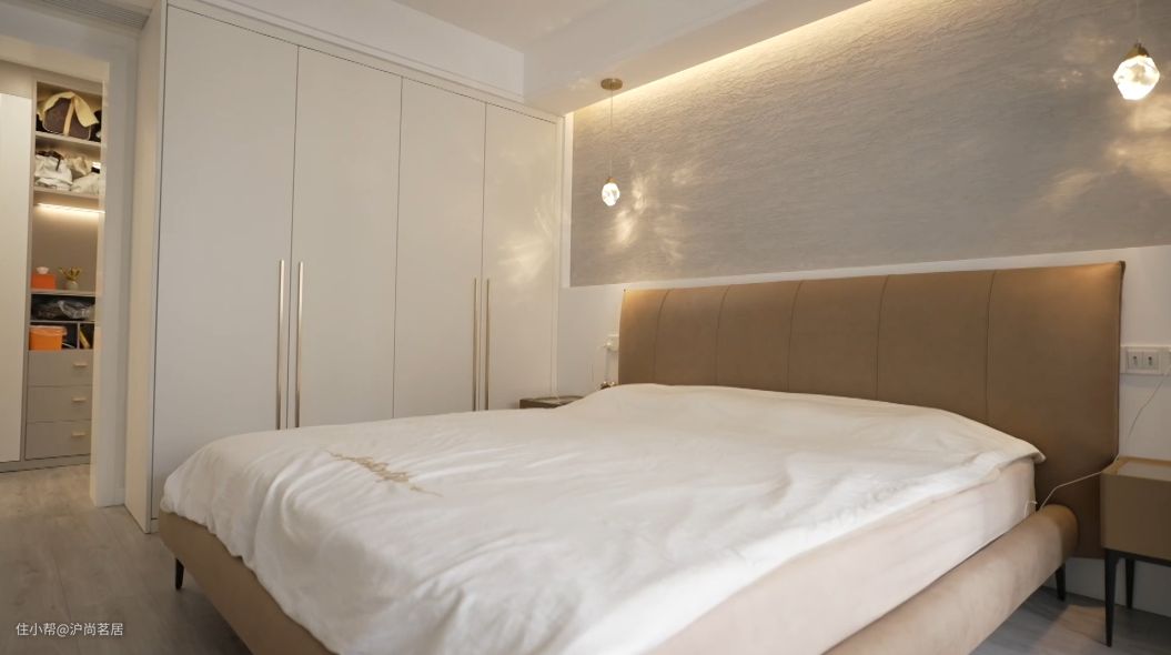 主卧空间面积很大,延续整体的现代简约风格,整体布置简洁大方又不失优雅;