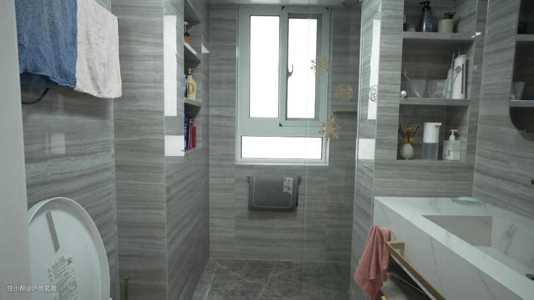 淋浴房做了半隔断,如果你觉得家里的卫生间面积小的话,半隔断的淋浴房设计是个不错的选择,既能起到挡水的效果,也能让空间不那么局促。