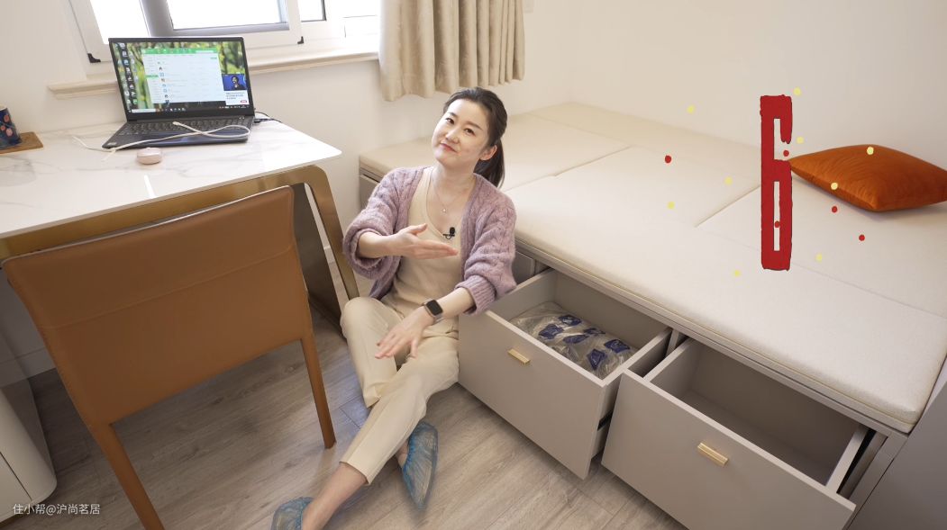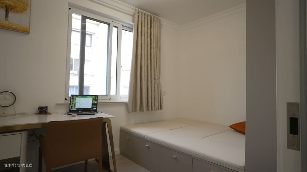 次卧由原来横的客厅空间改造而来,榻榻米+书柜+书桌,小而精致,是一个能够让人安安静静、沉下心来做事的空间~