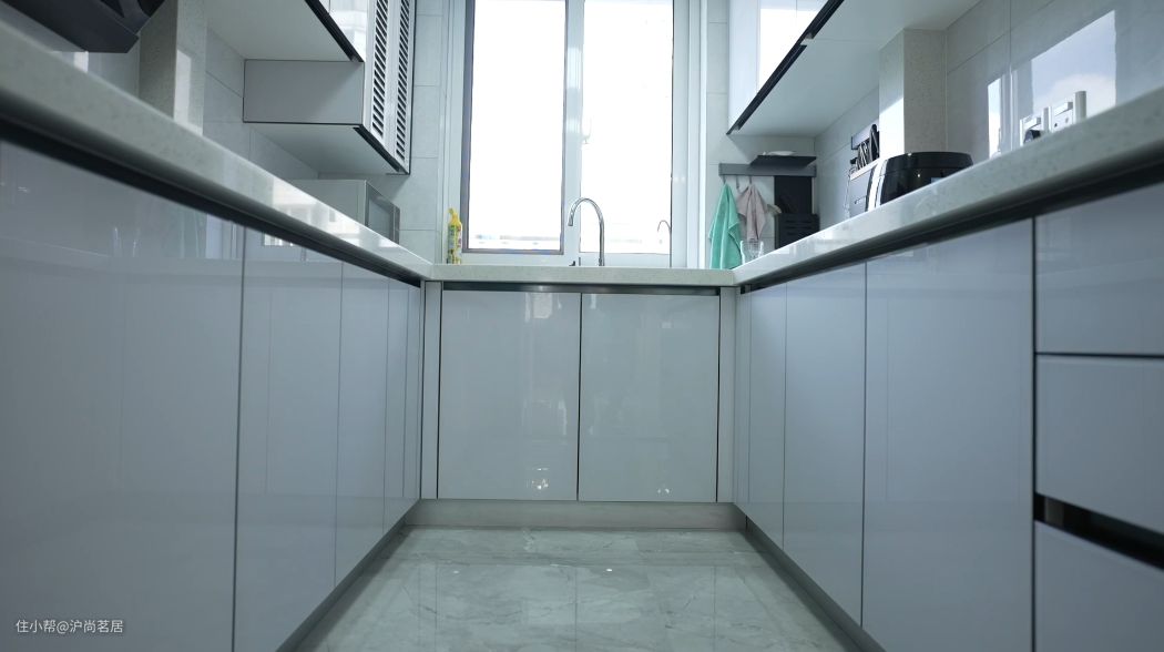 橱柜柜体的选择上,有点亚克力玻璃的感觉,白色中多了一种通透感,既方便清洁,也让厨房看上去更加干净通透!