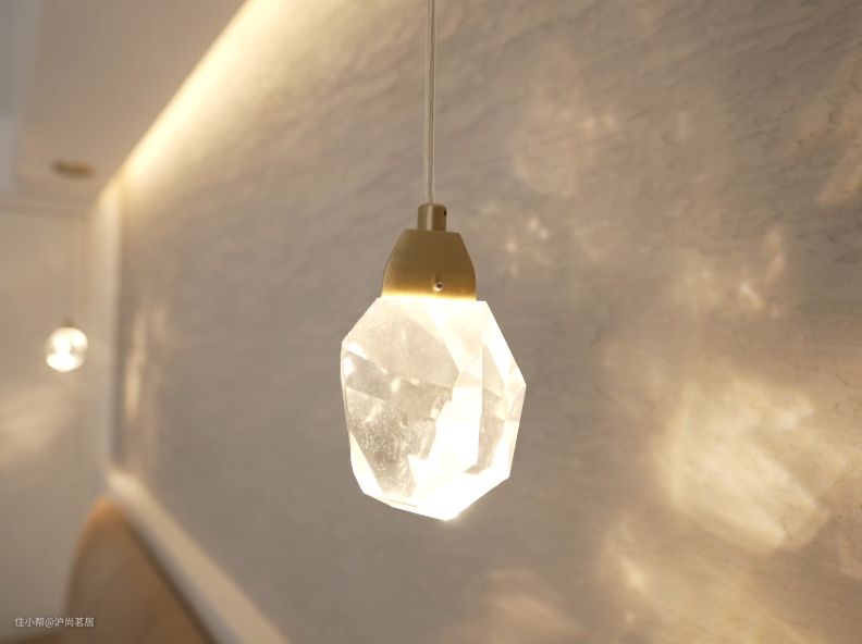 钻石造型的床头吊灯,为整个空间增添了浪漫气息;