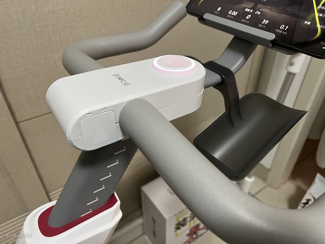 把手前方还有两个水杯架,手机支架,我日常锻炼的时候会把平板放上去边看课程边锻炼,有条件的姐妹也投屏到墙面,更大的画面会更有沉浸感,运动的氛围更棒。