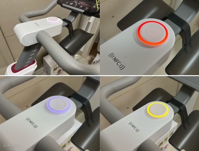 这段时间的总体使用体验还是很不错的,说几个我比较喜欢的点。比如把手中央的五色AI速燃环,AI速燃环有五种颜色分别代表着不同的燃脂状态,白色是热身,蓝色是燃脂,绿色是有氧运动,橙色是无氧运动和红色是运动极限,这个设计还是比较有科技感,也有创意。