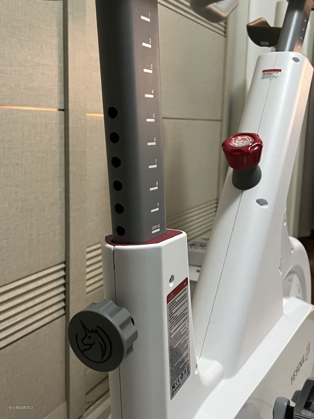 野小兽Mini版外观上看着很小巧,实际占地面积也只有0.5平米,无论是客厅还是房间摆放都是毫无压力的,搭配上底部的滚轮,移动也比较轻松。白色简约的外观设计,侧边还有品牌的logo,车身全包工艺,没有飞轮外露,座椅的前方是一个红色的旋钮,用来调节阻力。