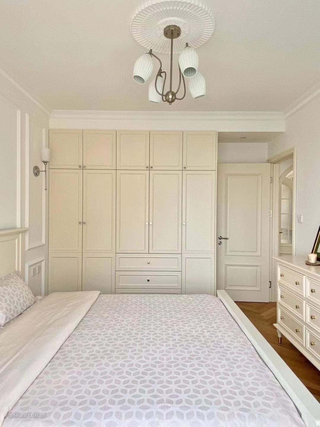 卧室到顶衣柜增加收纳空间,两米大床舒适安逸,背景石膏线装饰很有装饰感,还能彰显主人品味