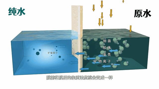 当无桶RO机晚上不用时,进水被关闭,增压泵也停止工作,在无外加压力的条件下,由于渗透压的存在,RO膜前后的纯水和浓水就会慢慢相互渗透,停机时间越长,膜内纯水的TDS值就会越高,这就是RO机早晨第一杯水TDS值高的原因。