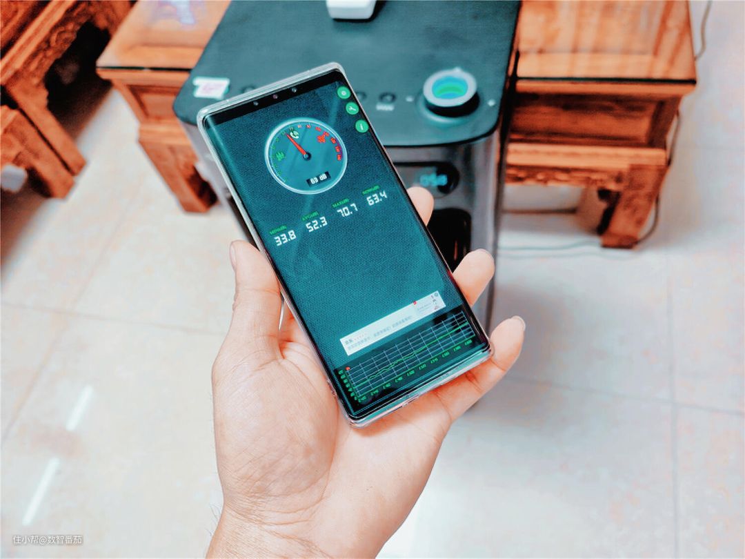 以下的噪音测试,我都是靠近机器近距离测试的结果,客厅本身的环境噪音偏大,低档的噪音我是在房间里面测试,近距离为32分贝(正常使用距离介于28-29分贝),中档的噪音为45分贝、最高5档为63-65分贝,与官方标称的数据差不多。