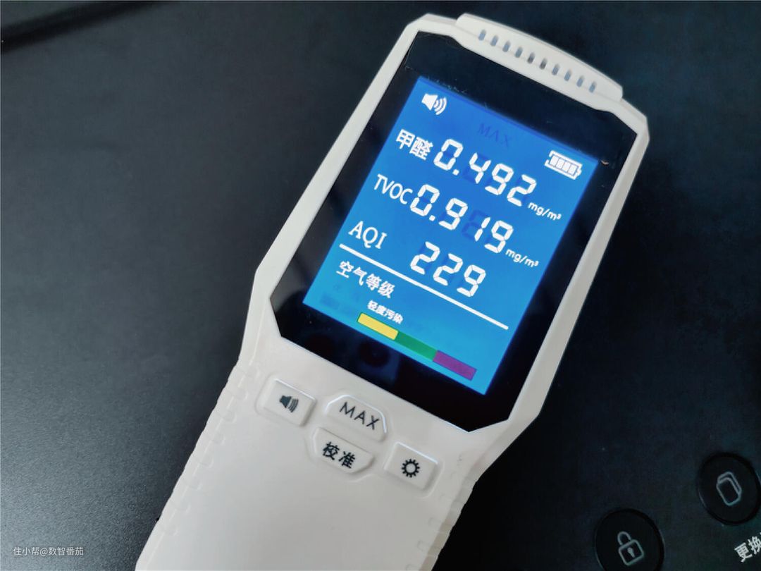 房间:甲醛0.16-TVOC 0.77-AQI 120,轻度污染