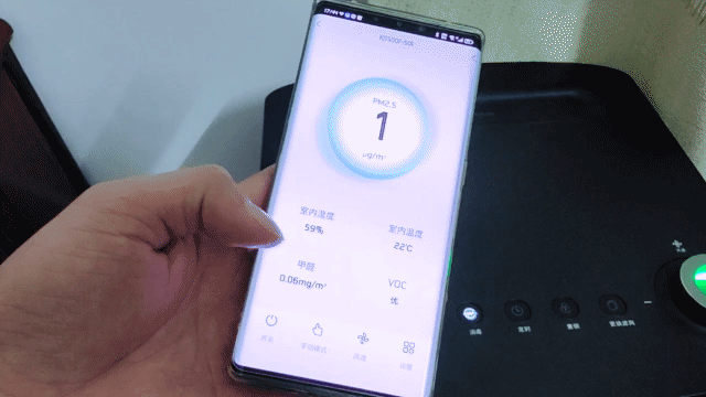 对比净化前的空气质量,确实得到非常大的改善,空气质量数据完全达到优质,而机器本身自带的监测功能,显示出来的数据,也完全达标,与我的测试仪基本一致。