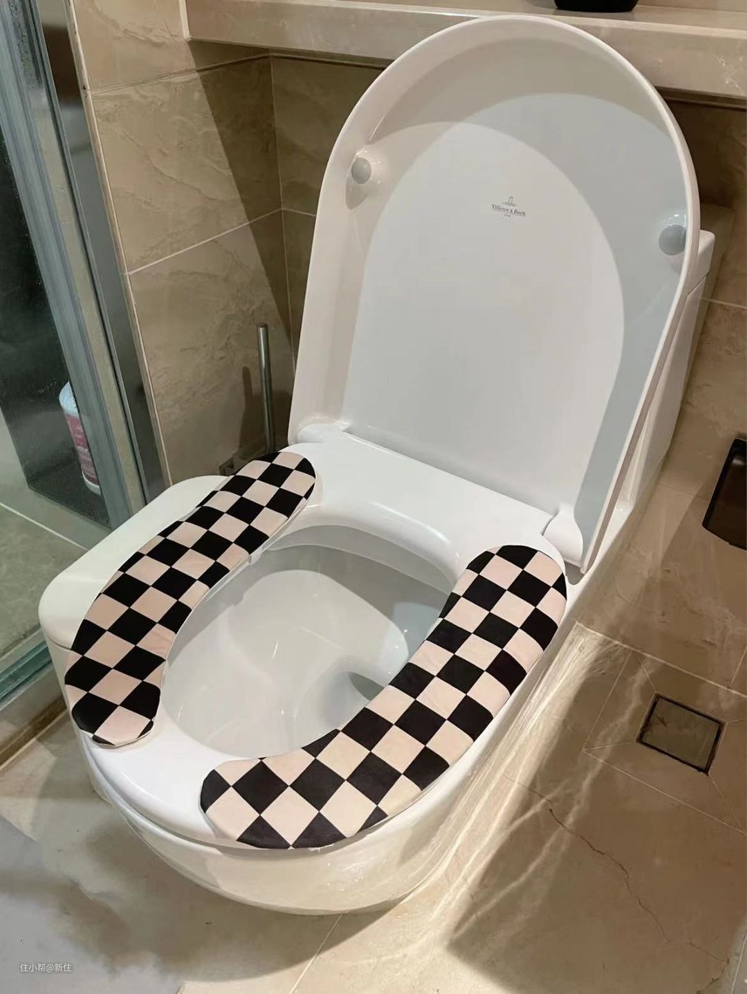 真受不了马桶冰的,有那种两边是贴的,主要接触的位置隔绝到就可以了,圈下不担心溅污,上面马桶盖也能完全覆盖住,不会被洗澡水溅到。