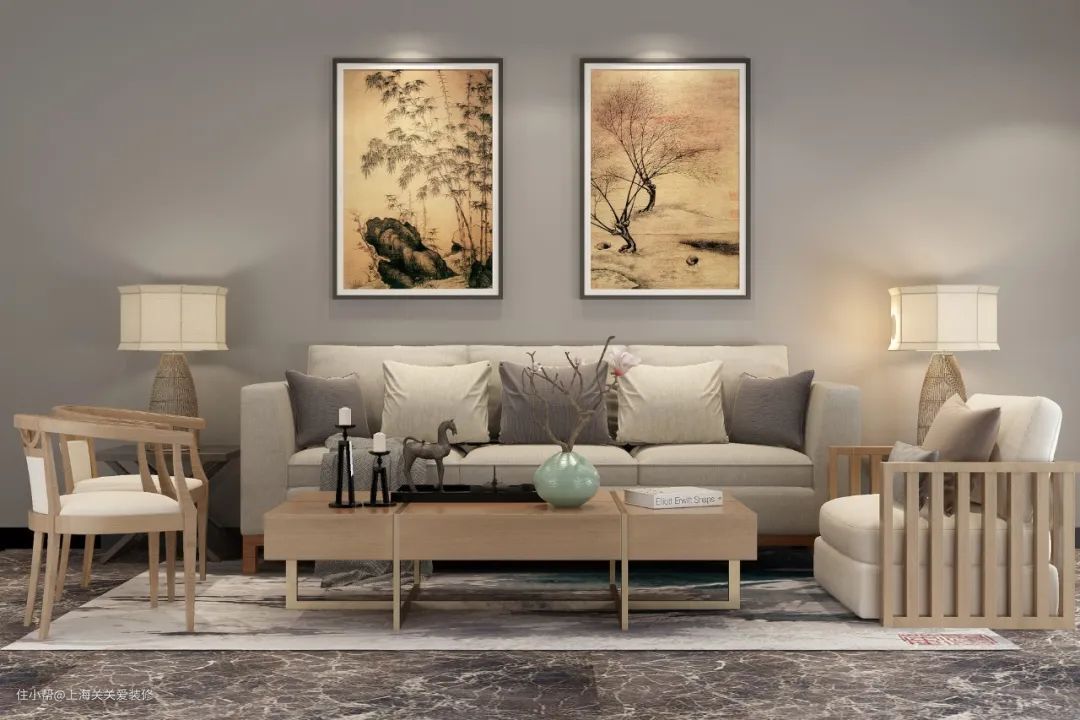 新中式风格比传统的中式风格要显得灵活随意一些,新中式将现代时尚元素和古典元素结合在一起,追求传统文化的同时又感觉舒适温馨,家具颜色也比较深,整体还是以实木为主,保留着中式的韵味。