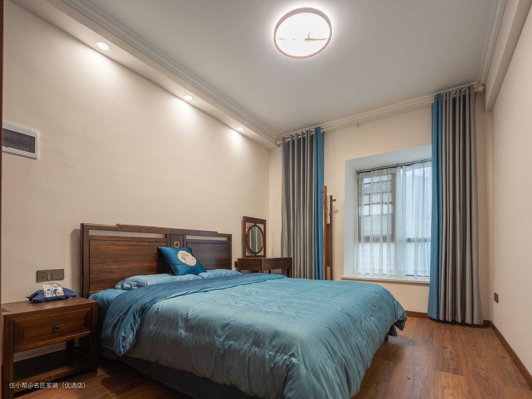 主卧空间是简洁质朴的设计,着墨不多,却在不露声色中流淌出涓涓禅意。带着浓浓古朴韵味的床头柜与梳妆台修饰着空间,在质朴素雅的衬托下尽显古家具之唯美神韵。一切只为寻找那个席梦睡眠空间,悄然无声今古互融。