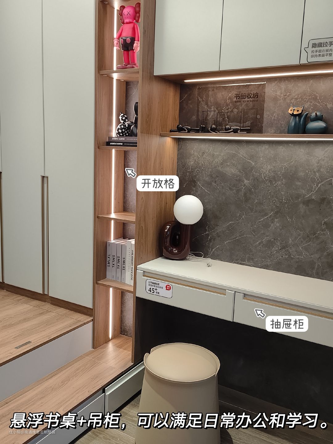 🔺悬浮书桌+吊柜设计,可以满足日常办公和学习;