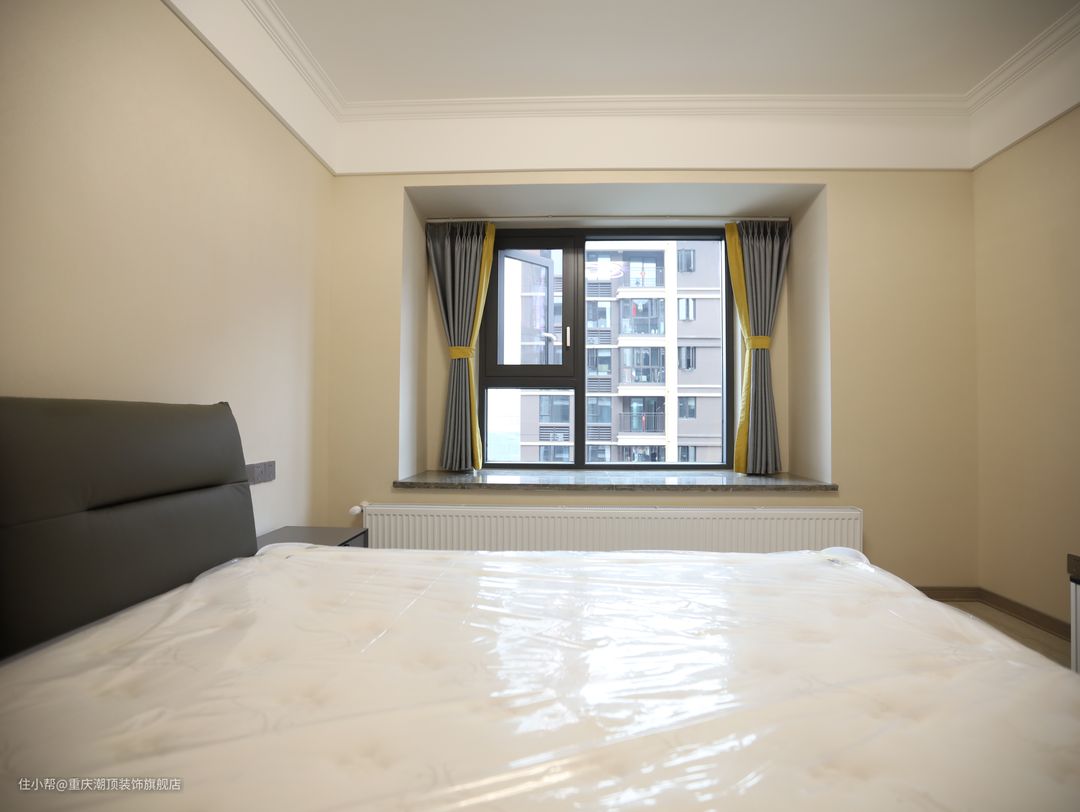 还有一间卧室是客房,业主家还没有安上床垫,从软糯的沙发床中就可以看出质感。