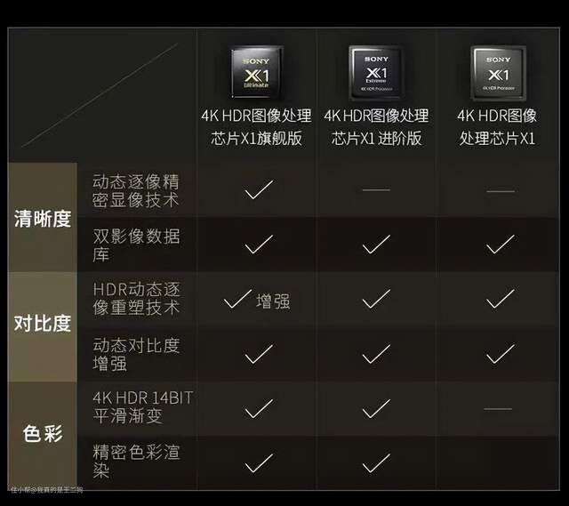 X1芯片也是索尼引以为傲的技术,目前只有在定位相对偏低的X80K/X85K系列配置X1芯片标准版本,更高等级的索尼电视都升级到最新的XR认知芯片。