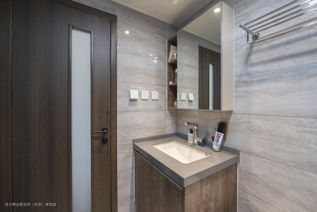 全屋都是采用灰色调的瓷砖来装饰的,一体感非常饱满,灰色上面搭配上简约的纹理质感更耐看。