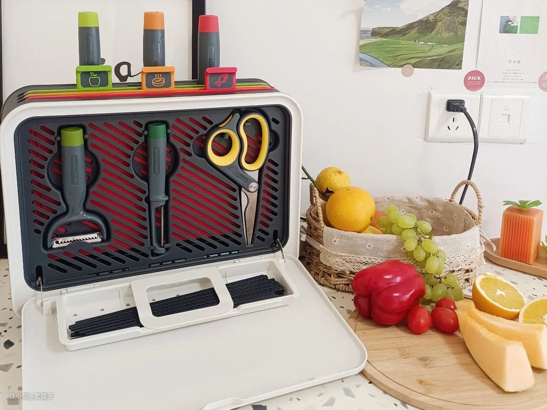 不但避免了食材交叉感染,而且还让我的备菜效率上升了一个level!摩飞三代消毒刀架还在前代的专刀专板基础上增加了砍切刀、刨丝刀、剪刀,实用性超强~