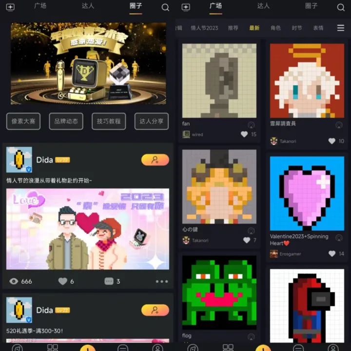 还有DIY像素画,可以在手机app上绘画,然后同步显示在Ditoo-mic像素点音蓝牙音响上,还有大佬的画作可以学习!