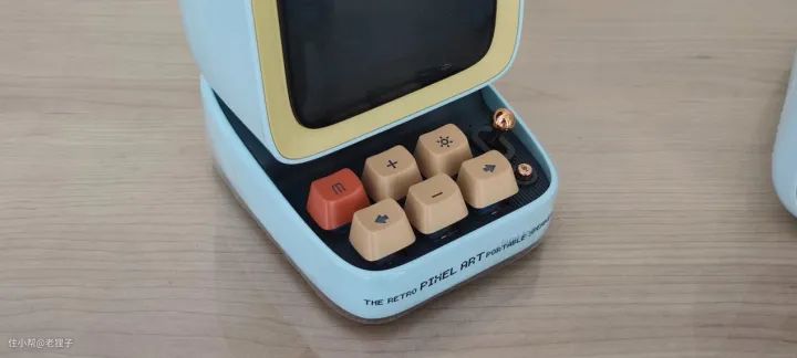 在手感上就很爽,因为六块小键盘采用了青轴的轴体,摁起来会咔哒响,而移动摇杆可不是控制方向的,而且确认,想要连接蓝牙,开启游戏,更改闹钟可少不了它。