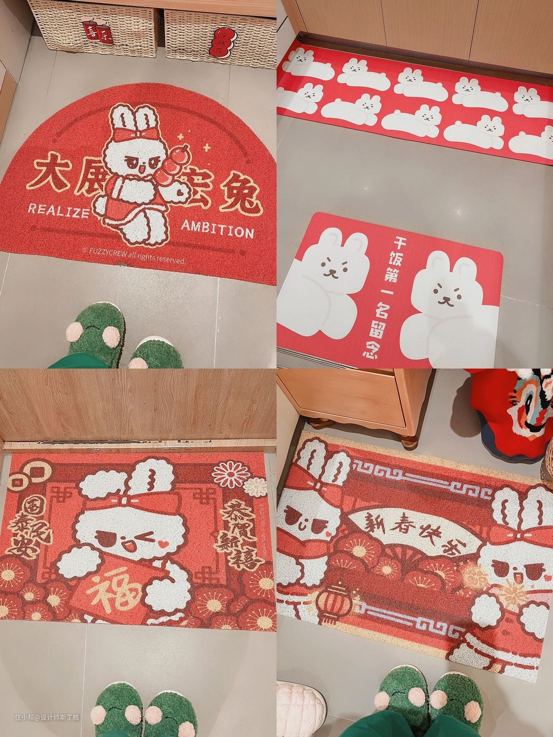 3.地毯——入户门,厨房以及卫生间门口都放了一块,小户型也拉满氛围感~兔年红红火火