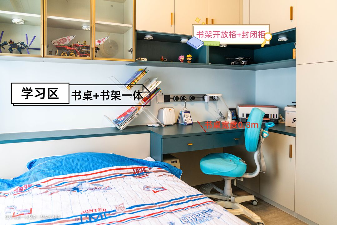 学习区主要由书桌和书架组成。孩子的书桌宽度【0.8m-1m】为佳,书桌靠墙处要预留插座和电脑接口。